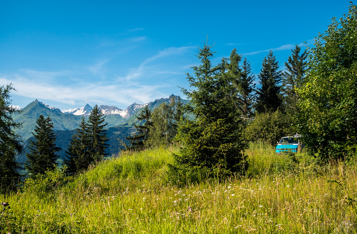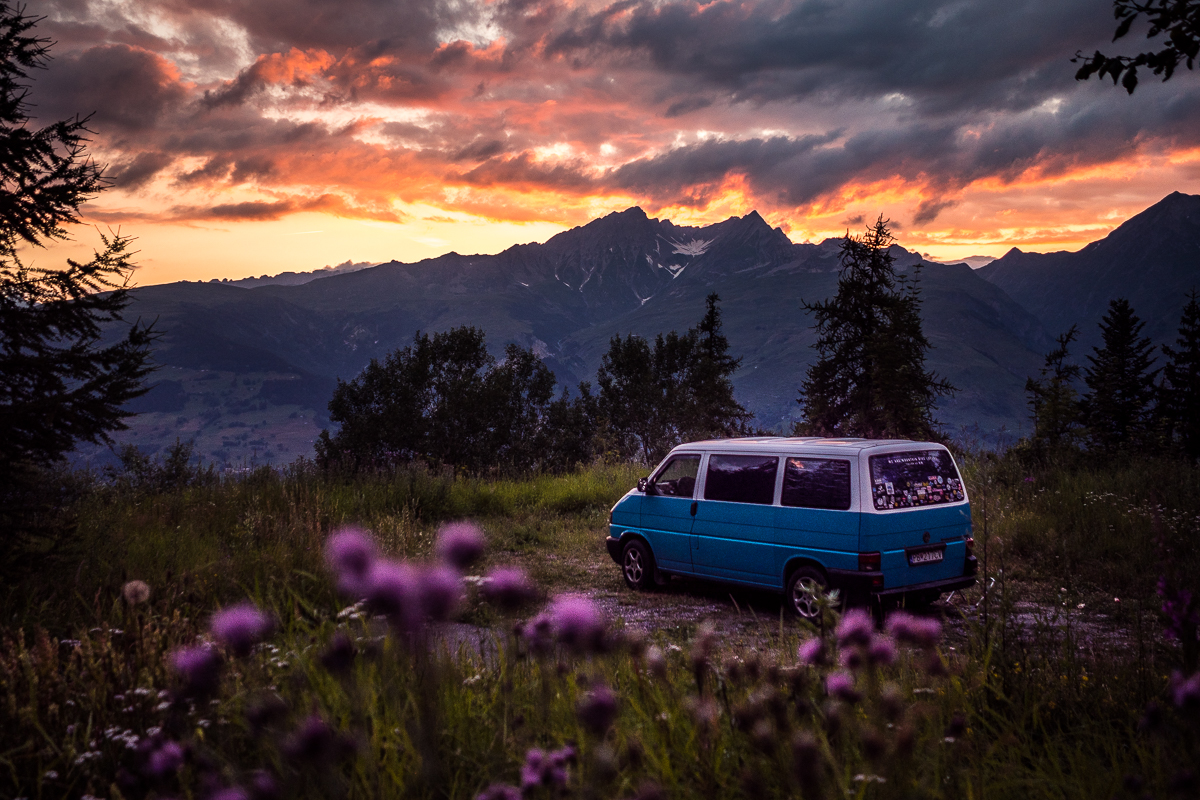Do jazdy vletíme rovnými nohami. Počasie nám praje, prvý výjazd berieme ako zahrievačku - ale keď sa napojíme na kombo Rock N'Arolles + La 8, je jasné, že žiadne rozbehnutie nebude. To je jazda rovno na plný plyn! Desať kilometrov technického terénu, viac ako 1 400 výškových metrov zjazdu a všetko, čo máme na bajkovaní radi. Úseky, kde sa ti bike pod zadkom krúti ako had – samý koreň, kameň, switchback, a hneď nato letíš po krásne vyhladenej flow lajne medzi ihličnanmi. Zrazu z nás opadáva všetka únava z cesty. Čistá radosť z jazdy. Trail La „8“ nás nakoniec vypľuje až dole v Bourg-Saint-Maurice a ruky nám horia. Ale žiadna panika - funiculaire nás za chvíľu vyvezie späť do Arc 1600. V cene bike passu. Luxus. Znovu hore a pred nami ďalšie možnosti – napríklad modrý flow trail Legend, ktorý je ideálny na regeneráciu, alebo shuttle busom zadarmo do inej zóny a dáme to celé znova, z iného uhla. Prvý deň sme si hovorili, že do toho nepôjdeme hneď naplno - len sa trochu rozjazdiť, ohmatať terén. Ale Les Arcs nás pohltilo skôr, než sme si to stačili uvedomiť a zrazu sa rútime lesom s úsmevom až za ušami a slnko klesá k horizontu. Vraciame sa kempovať na rovnaké miesto v lese a potajomky dúfame, že tentoraz to bude pokojnejšia noc ako tá minulá.
